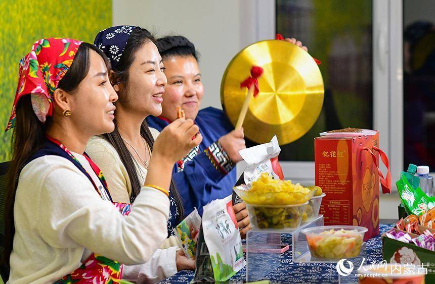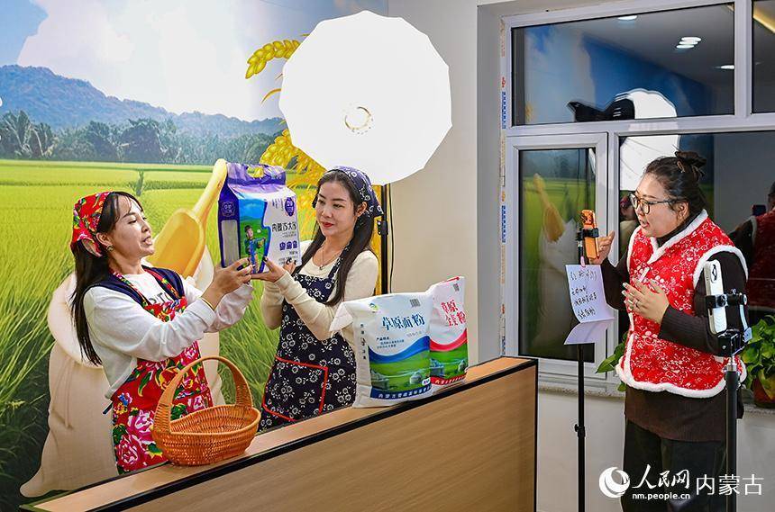 在乌兰浩特市乌兰哈达镇三合村电商直播基地,“连农学院”学员直播带货。王正摄今年以来,内蒙古自治区兴安盟乌兰浩特市乌兰哈达镇三合村打造集培训、实践、孵化、销售、物流于一体的电商直播基地,通过校地联动建设“连农学院”,培育乡村电商人才,组建“直播助农百人团”,将当地大米、玉米、木耳、百香果、粘豆包等20余种特色农产品销往全国各地,有效促进农业增效,农民增收。(王正)