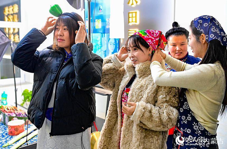 在乌兰浩特市乌兰哈达镇三合村电商直播基地,“连农学院”学员准备直播带货。王正摄
