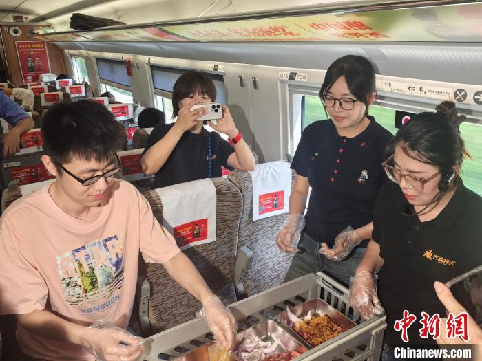 旅客在列车上体验制作齐齐哈尔家庭拌肉 史轶夫 摄